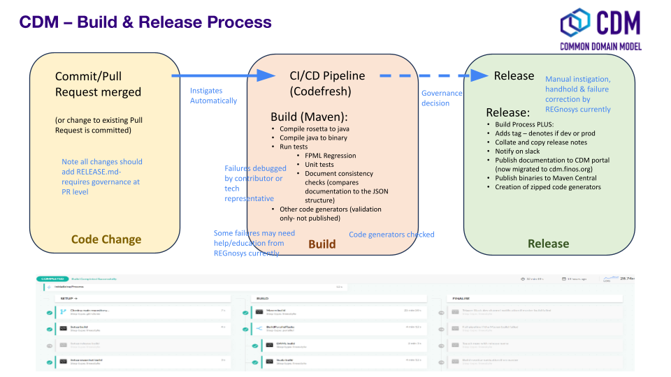 - Quality assurance. Seek the early appointment of at least one CDM Maintainer who can assist modelling discussions and provide early feedback. CDM Maintainers are appointed by the CDM Owners as and when relevant. Please contact cdm@lists.finos.org.